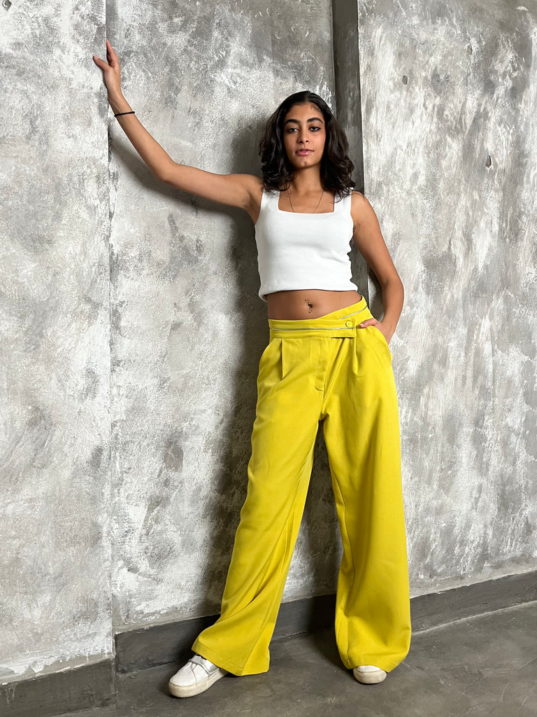 Criss cross lined waist pants are a fashionable and unique variation of traditional pants that feature a distinctive criss-cross design at the waist. These pants typically have a high-waisted silhouette with a series of intersecting fabric panels that create a visually striking and flattering detail.