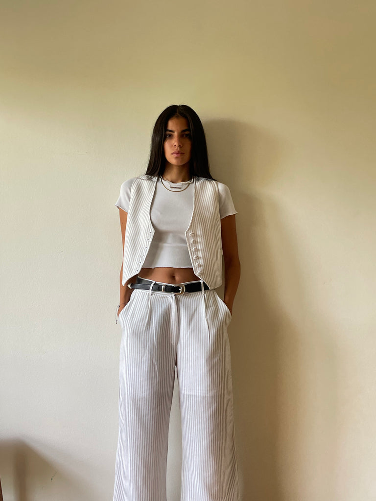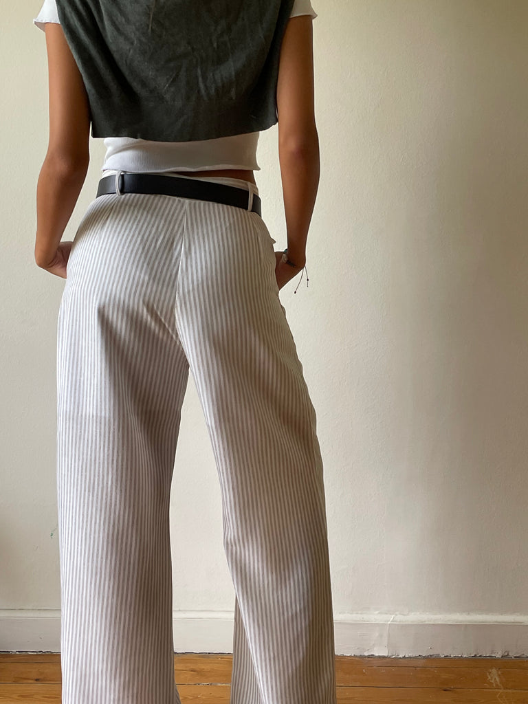 Beige Striped Pants