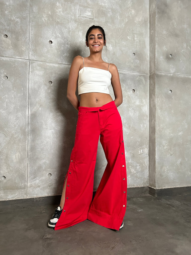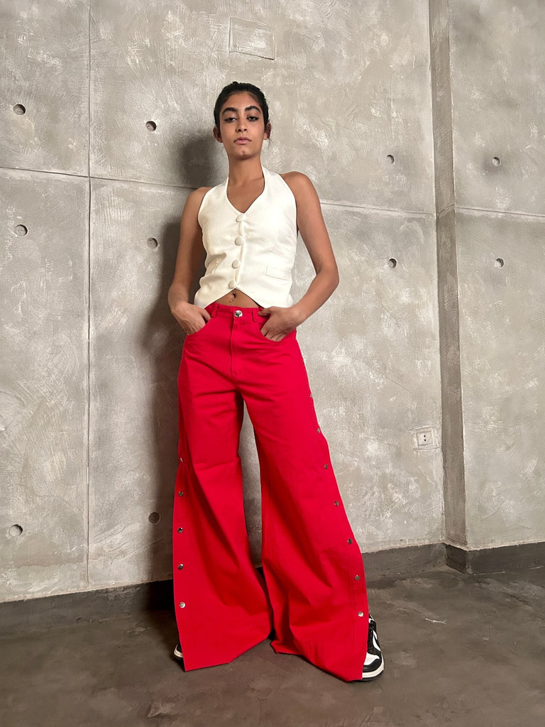 Side snap button wide-leg pants are a stylish and versatile choice for those seeking a unique and modern twist on traditional wide-leg pants. These pants feature a series of snap buttons along the side seams, allowing for adjustable and customizable fit and adding a touch of visual interest.
