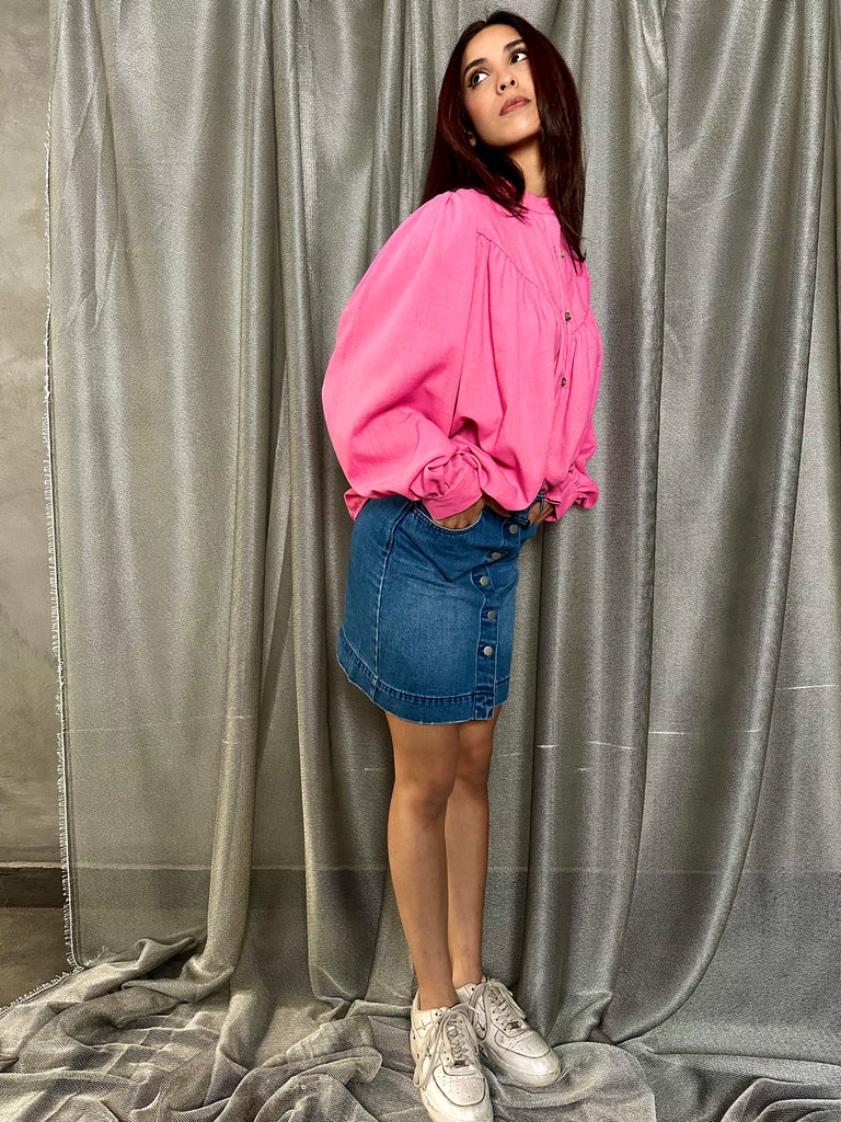 Pink Puff Sleeve Linen Shirt - is backordered and will ship as soon as it is back in stock.