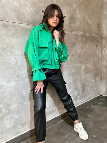 Green Casual Double Pocket Jacket